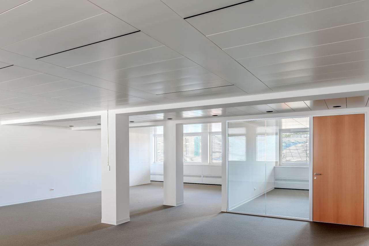 Die Gipskühldecke von Barcol-Air bietet nicht nur eine effiziente Kühlung, sondern fügt sich auch nahtlos in das ästhetische Gesamtbild des renovierten Raumes ein. Durch ihre Leistungsfähigkeit und Zuverlässigkeit trägt sie dazu bei, ein angenehmes und produktives Arbeitsumfeld für Kunden und Mitarbeiter gleichermassen zu schaffen.