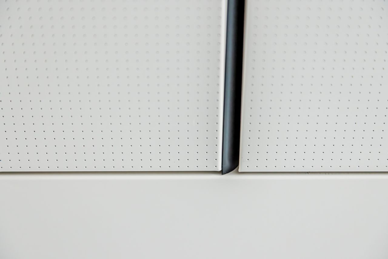 Im gesamten Projekt wurden 1010 m² geschlossene Metallkühldecke A11-C und 220 m² fugenlose Gipskartondecke VARICOOL AP installiert. In den Bereichen der Ausstellungshalle sowie in einzelnen Büroräumen wurde aufgrund der benötigten hohen Schallabsorption auf eine spezielle Perforation gesetzt. Mit einem Lochdurchmesser von 12 mm und einem freiem Querschnitt von 23.5 % erfüllt die Metalldecke diese Aufgabe und überzeugt dennoch mit einer hohen thermischen Leistung.